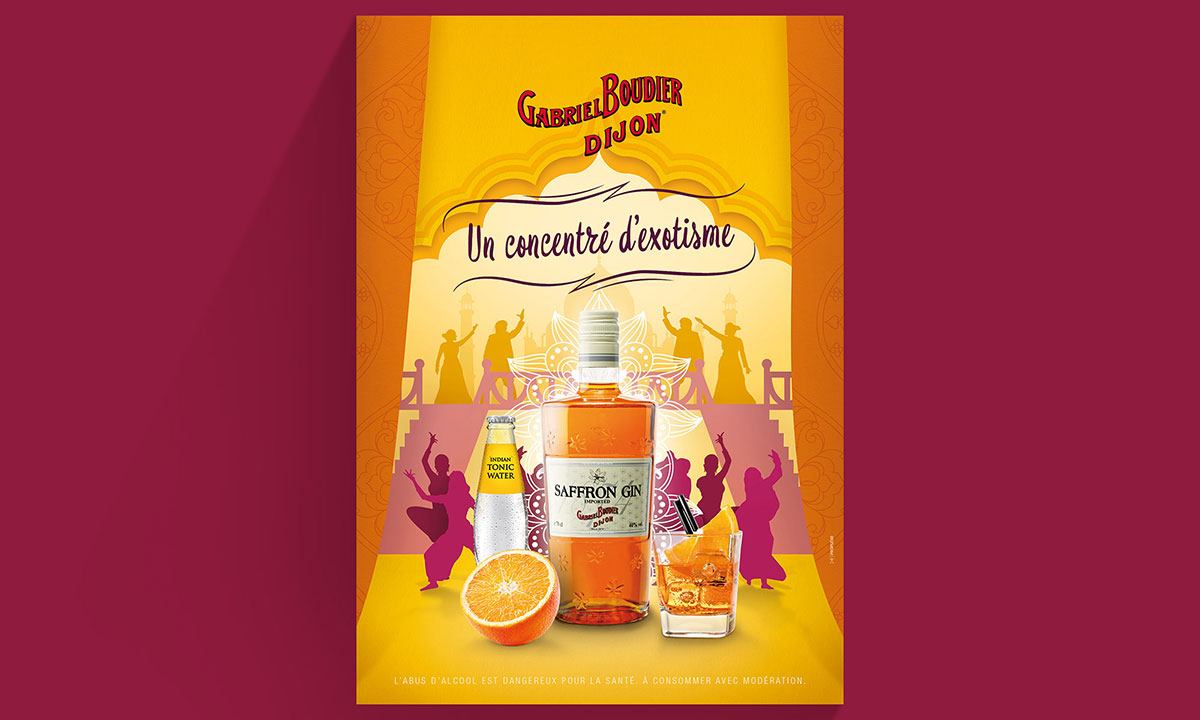 Pour Gabriel Boudier, Propulse dessine et réalise un visuel qui nous plonge dans une ambiance Bollywood pour faire voyager l'un des produits iconiques de la marque : le Saffron Gin.