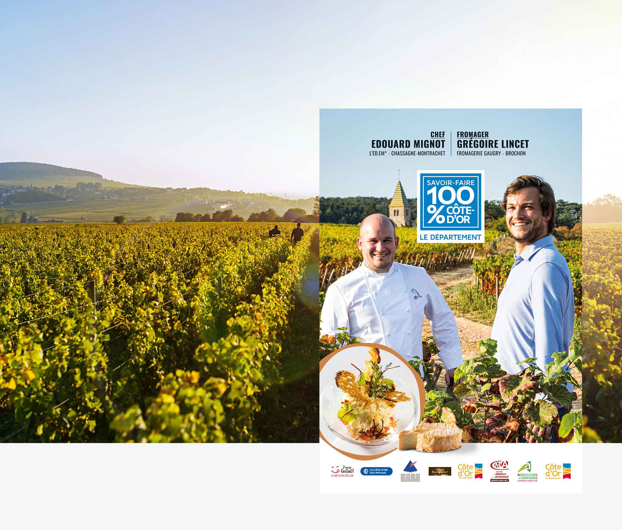 Le Département de Côte-d'Or confie à Propulse le soin d'imaginer une campagne de communication centrée sur la valorisation des savoir-faire et produits locaux. Avec de nombreuses déclinaisons, la campagne met invariablement en scène un chef, un producteur, un produit du terroir et une recette gourmande ! La valorisation des filières, des produits et des acteurs est au cœur de la mission du département ; et passionne l'agence depuis des années !