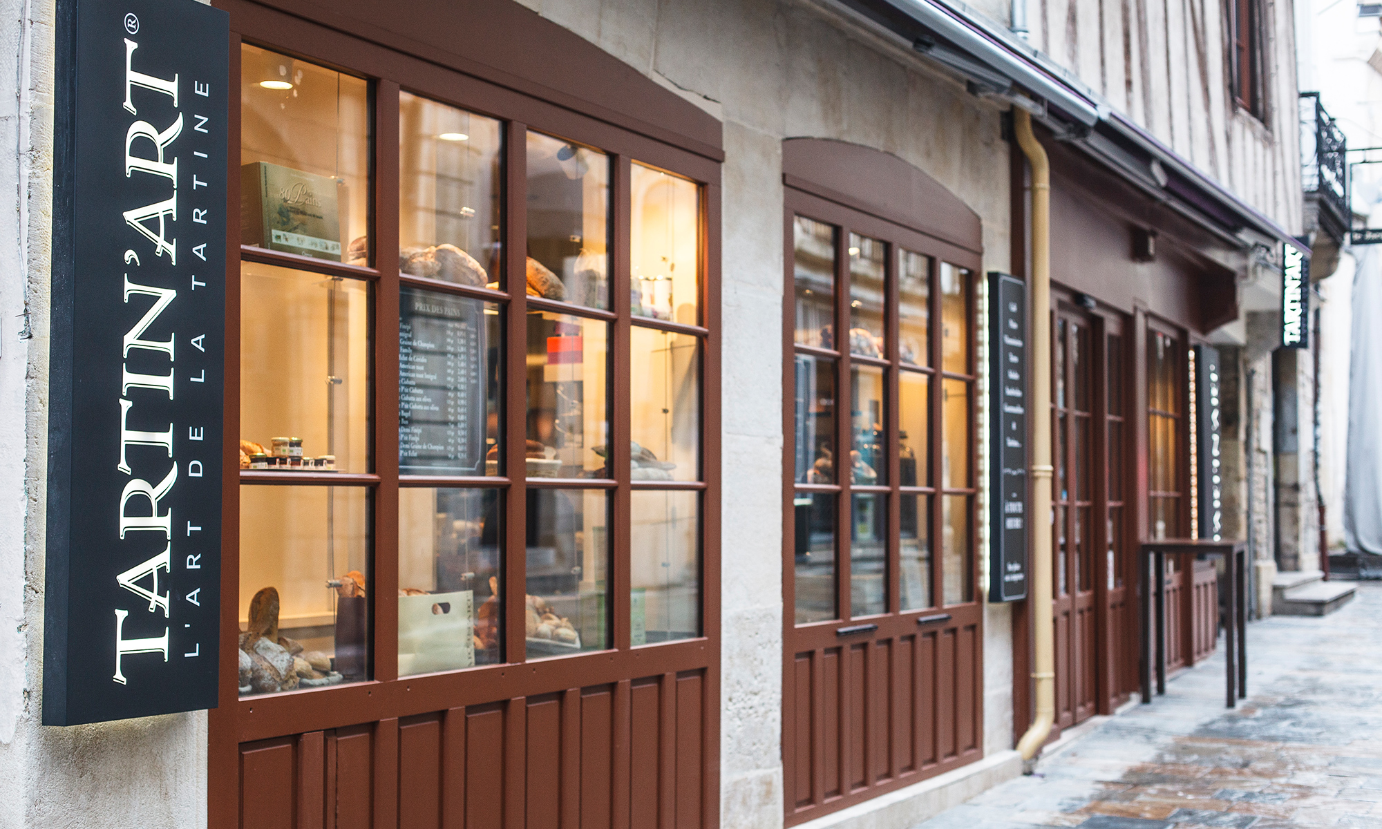 Propulse signe la création de l’identité visuelle du nouveau concept de restauration rapide « Tartin’Art ». Situé en plein cœur historique de la ville de Dijon, ce point de vente a été habillé de la tête aux pieds par notre équipe. Logo, charte graphique, signalétique, affichage, équipements… Découvrez le résultat en images.