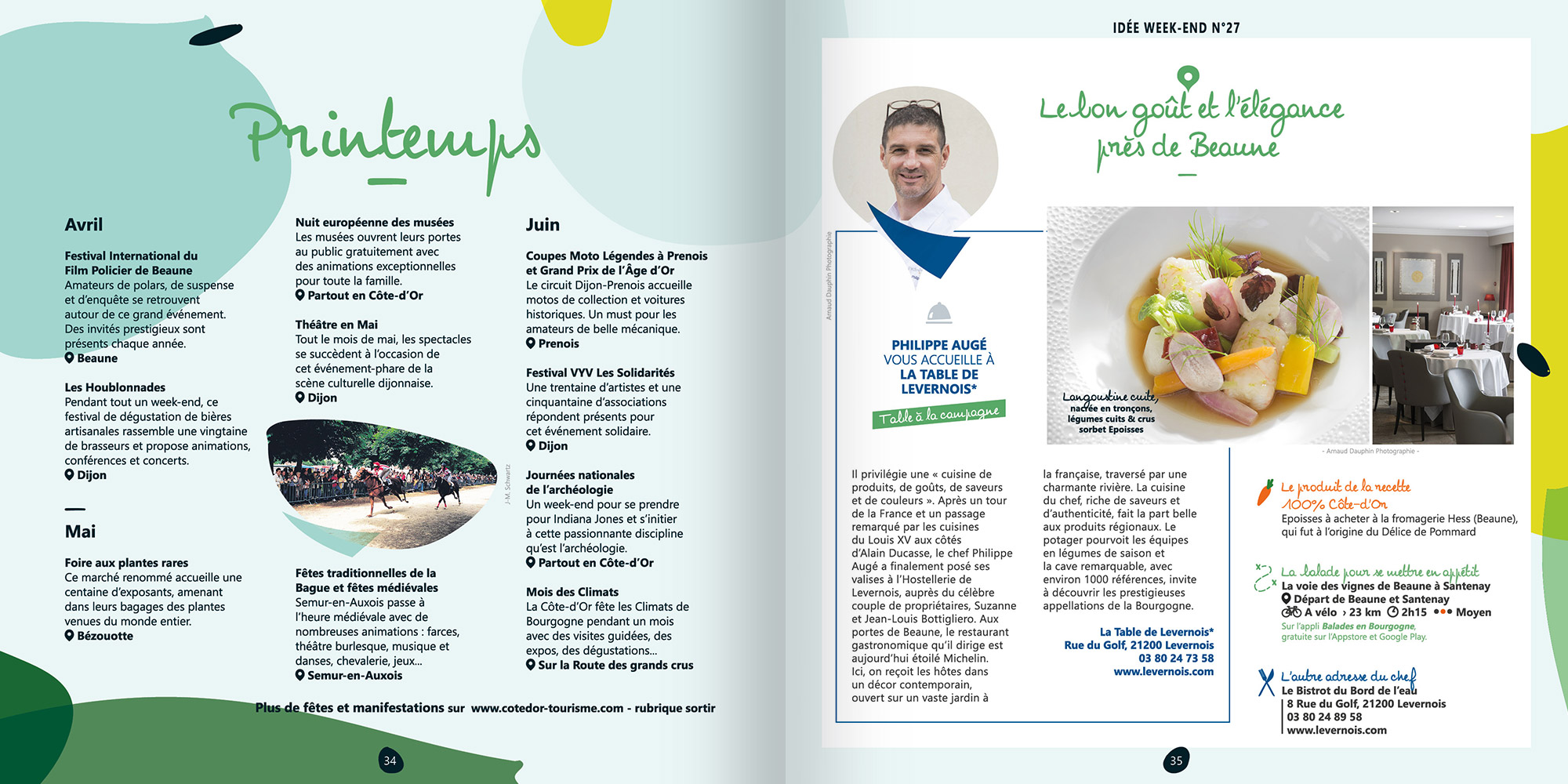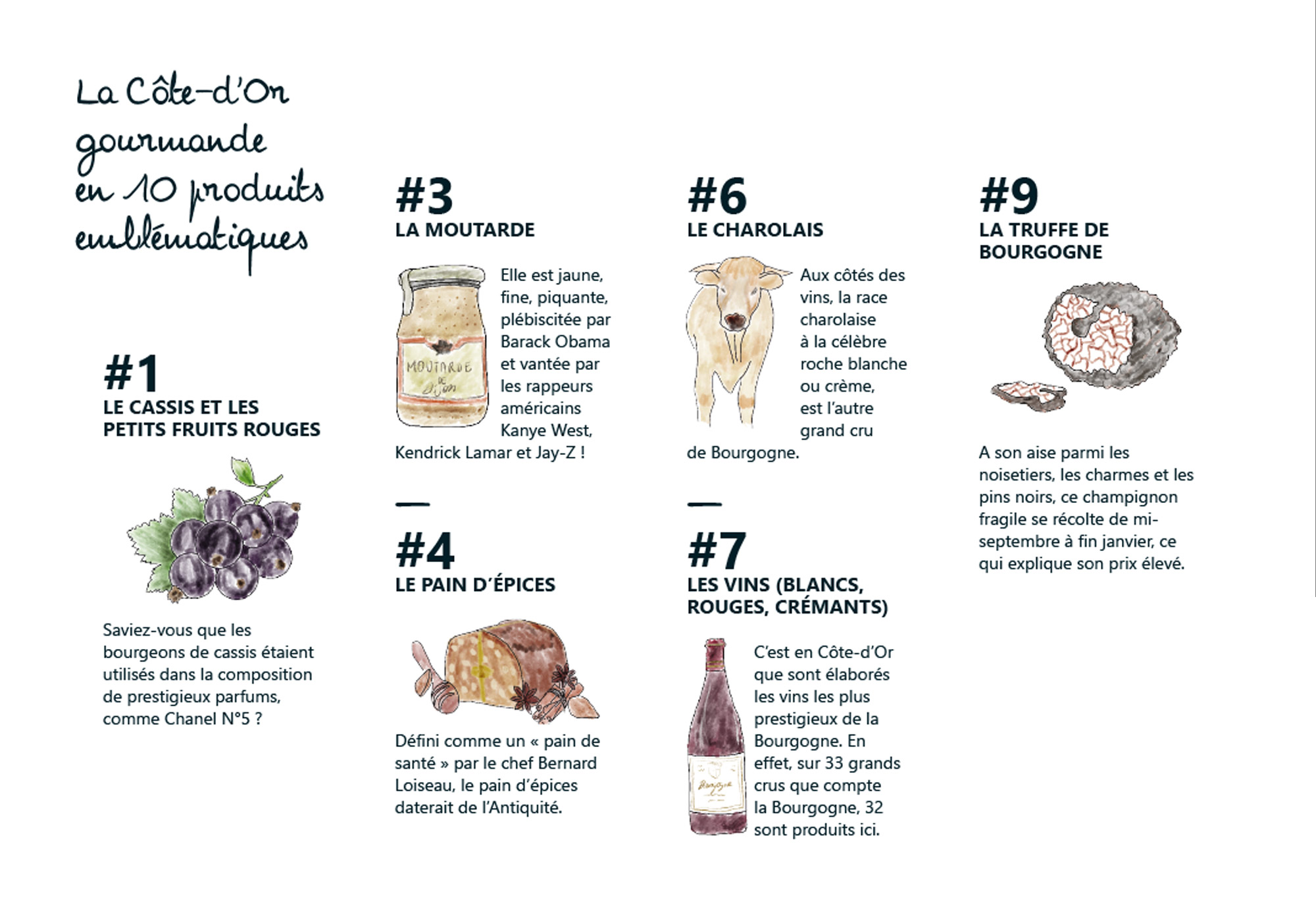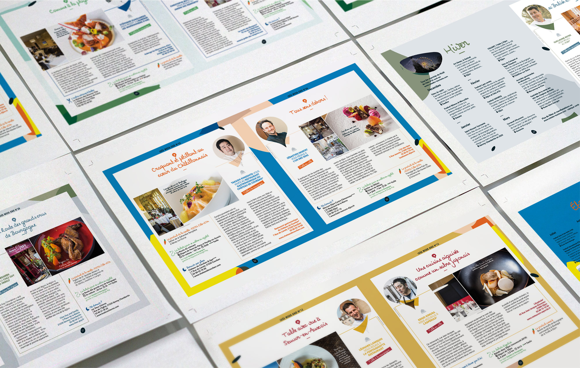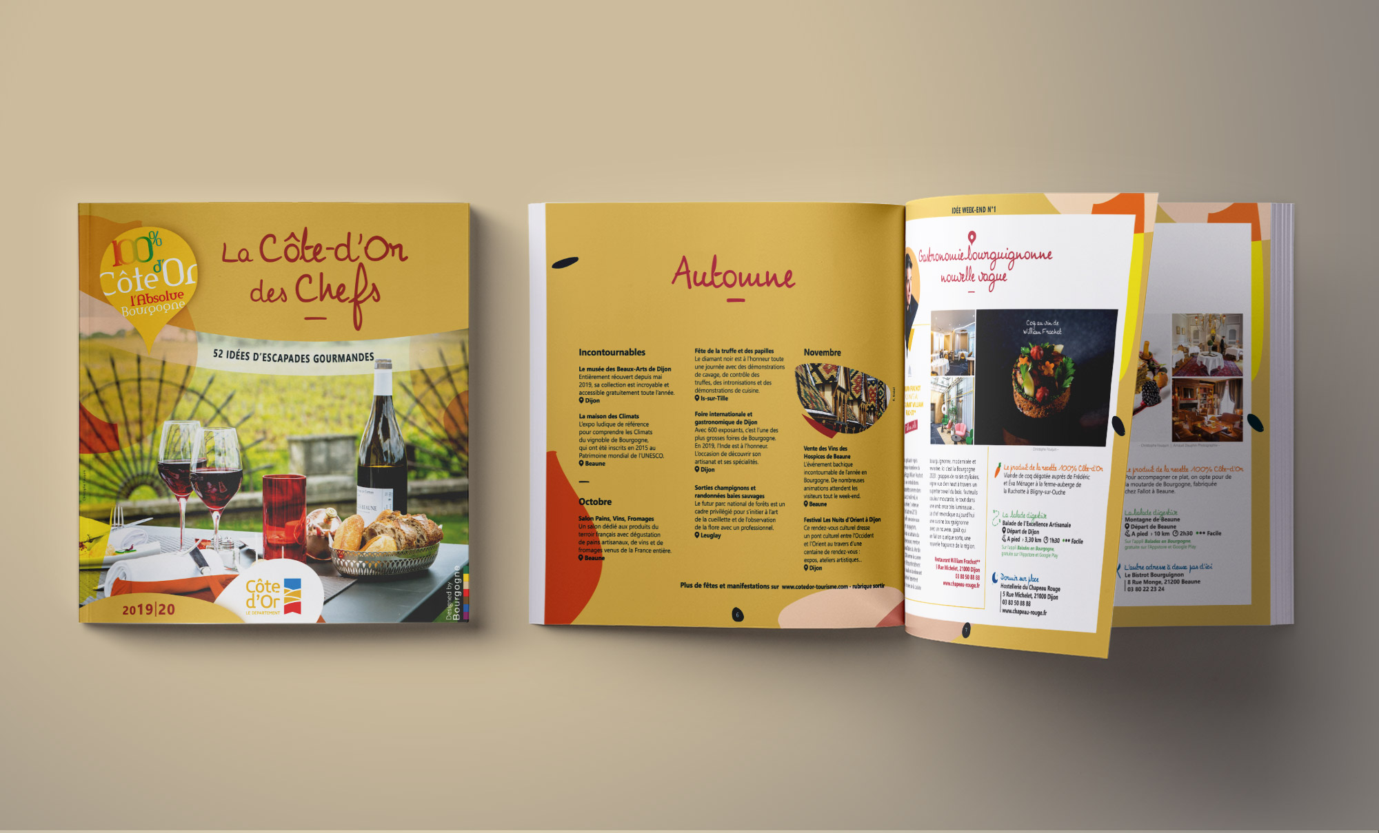 Côte-d'Or Tourisme (l'Agence de Développement Touristique de Côte-d'Or), Propulse mobilise son savoir-faire en matière éditoriale pour imaginer un carnet de recette entièrement dédié aux chefs aux fourneaux des restaurants du département. L'objectif de cette communication est de mettre en avant la dimension gastronomique du patrimoine culturel de la Côte-d'Or à travers celles et ceux qui orchestrent ces richesses gustatives en cuisine. Avec une lecture rythmée par les saisons, les recettes proposées par les chefs font la part belle aux produits de saison et du terroir.