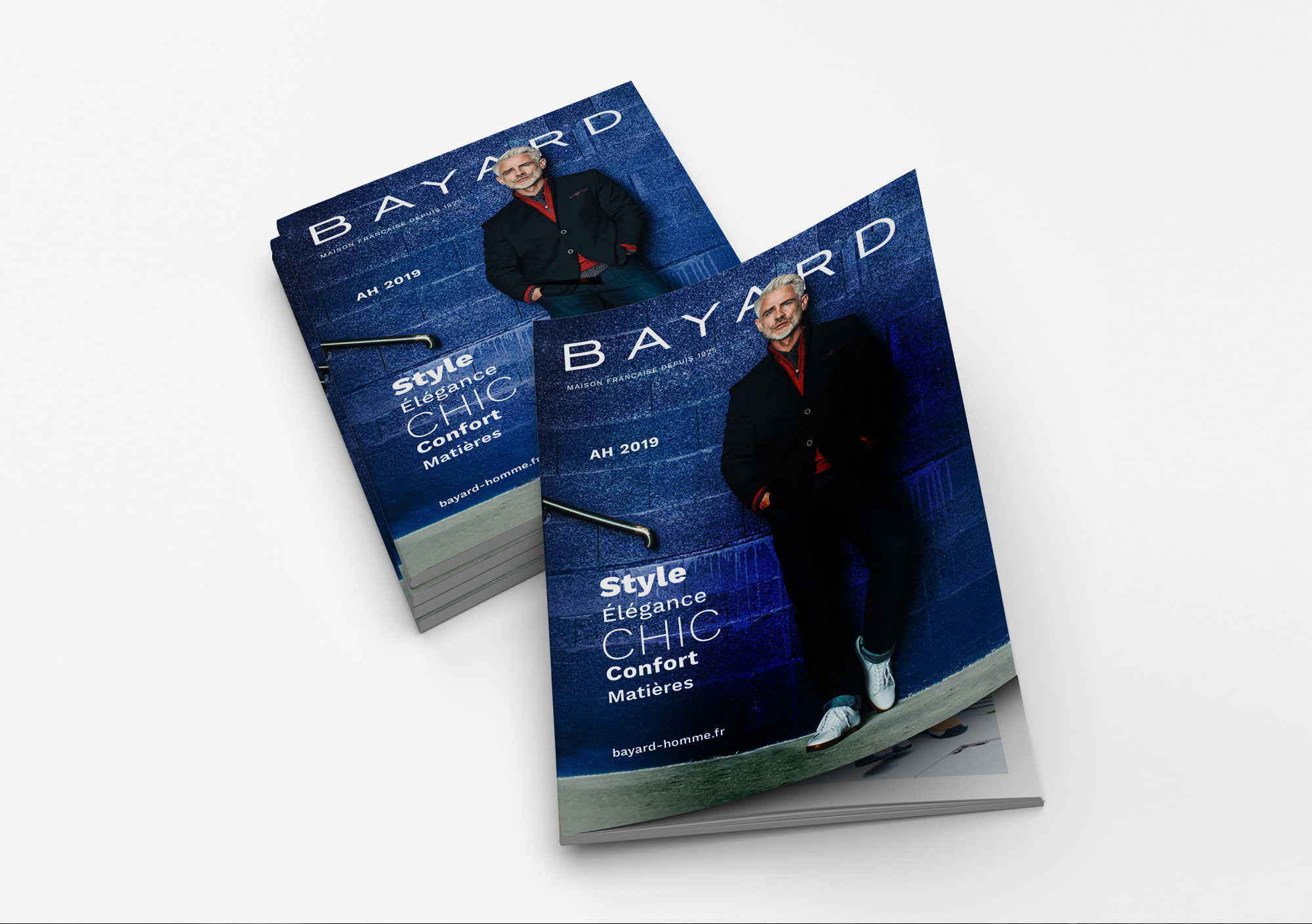Pour accompagner Bayard dans la valorisation de ses belles pièces, Propulse imagine une brochure inscrite avec élégance dans le positionnement de la marque. Les photographies réalisées sur mesure permettent de voyager dans des univers variés, sublimant les vêtements. La diversité des situations proposées et des vêtements portés offre l'occasion aux cibles de se projeter selon leurs goûts. Capitalisant sur le choix des matières et le confort de ses vêtements, Bayard diffuse avec cette brochure, une certaine idée du chic masculin.