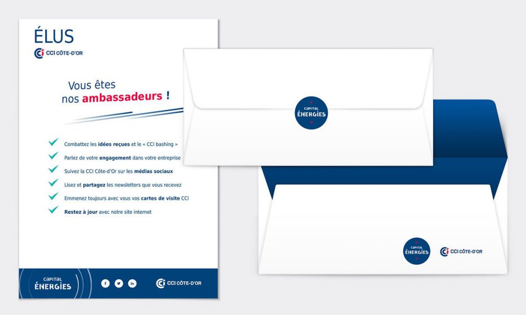 Propulse présente l'identité de la mandature 2017-2021 pour la CCI de Côte-d'Or qui lui a été confiée. Pour ancrer la nouvelle identité, Propulse s'appuie sur les codes de la charte graphique nationale et fédère les publics autour de la notion d'énergie.